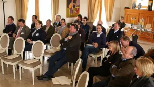 Pour la première édition, l'entreprise a fait appel à Michel Rolland. Devant trente représentants des grands châteaux du Libournais, Michel Rolland, interviewé par Bernard Burstschy a évoqué les changements clés intervenus au cours de ces trente dernières années, tant au niveau conduite de la vigne, que de la vinification ou de la communication.