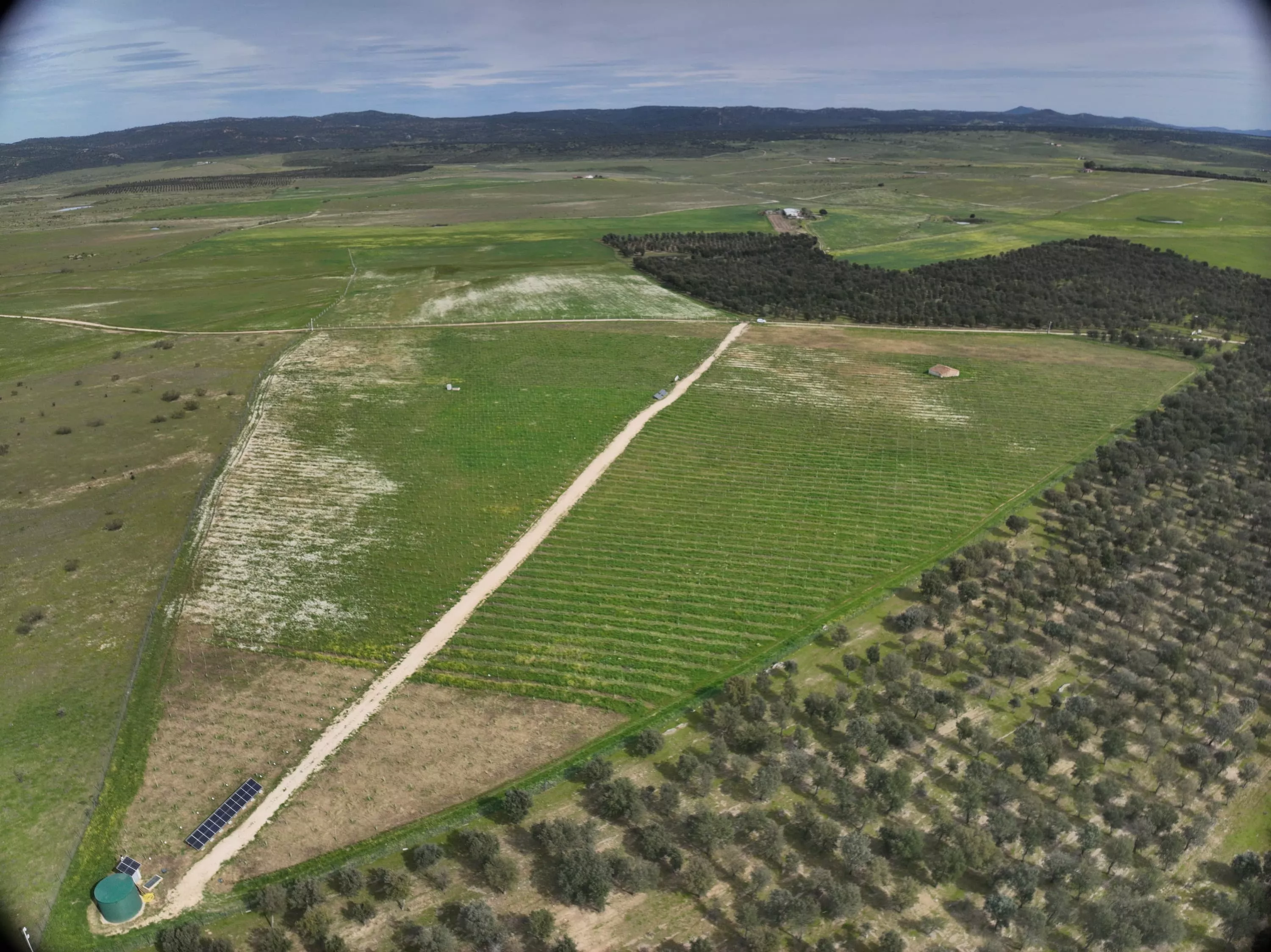 Cette infrastructure unique, alimentée par énergie solaire, s’étend sur une dizaine d’hectares et se compose de 7 lots avec différentes d’interventions et densités des arbres (espacements inter rangs de 3 et 4m). Chaque lot est minutieusement suivi au moyen de capteurs mesurant la croissance, le flux de sève, l’humidité du sol et les conditions climatiques (pluviométrie, vent, humidité …). Ces informations permettent de doser au plus juste les apports en eau sans gâchis qui sont près de 6 fois inférieurs au besoin d’une plantation arboricole classique.