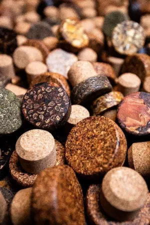 « Pour donner du sens au design du bouchon, chaque matière naturelle utilisée pour produire les têtes sont soigneusement sélectionnées afin de mettre en valeur leur spécificité esthétique ; par exemple, un bouchon ELEMENT en marc de pomme permettra de distinguer clairement les pépins de la pomme et de conserver la nature de cette matière première dans sa totalité. », Alexandre Roux.